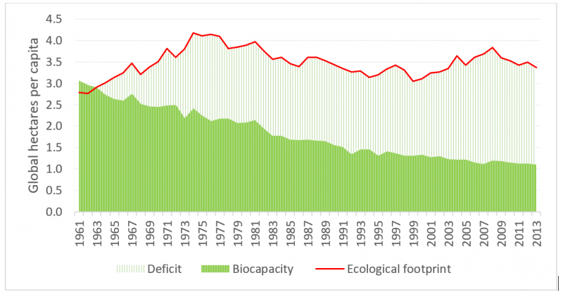 Figure 1: Ecological footprint and biocapacity per capita for South Africa from 1961 to 2013. Source: Author’s composition, based on data from Global Footprint Network (2017).